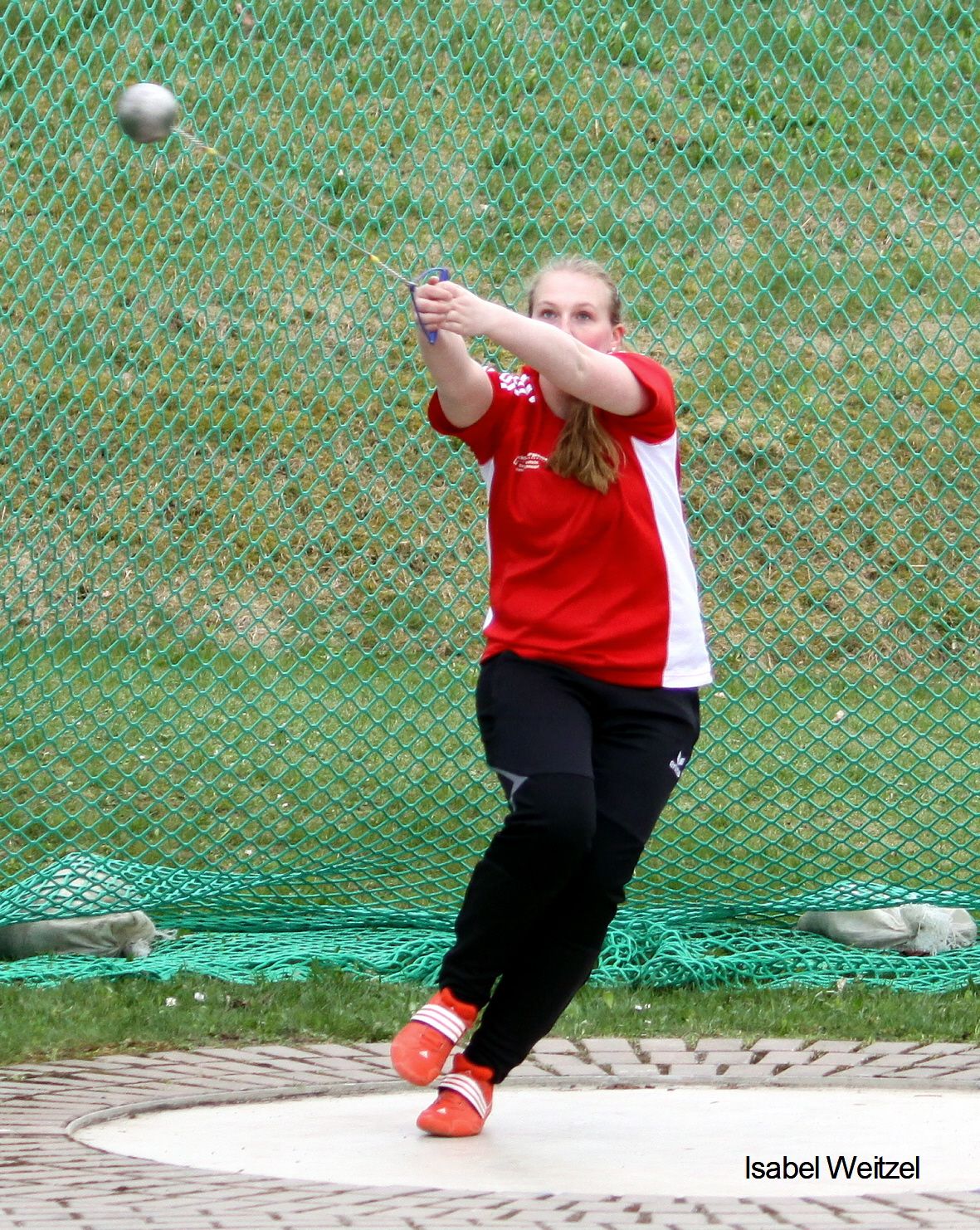 Super lief es für Merle Tetem. Mit 51,52 m ist die Qualifikation der weiblichen Jugend U 18 für Rostock (3 kg/47,00 m) bereits in trockenen Tüchern. „Dennoch sind die 55 Meter mein Nahziel“, gibt sich die 17 Jahre alte Hans-Jürgen-Hentschke-Enkelin aus Borken selbstbewusst. „Diese Leistung wurde ebenso aus dem vollen Training heraus erzielt wie die 46,81 m (4 kg) von Isabel Weitzel bei den Frauen“. sagte Kadertrainer Helmut Schneider und betonte weiter: „Diese Resultate sind eine hervorragende Basis, auf der wir für die kommenden Wettkämpfe aufbauen können“.