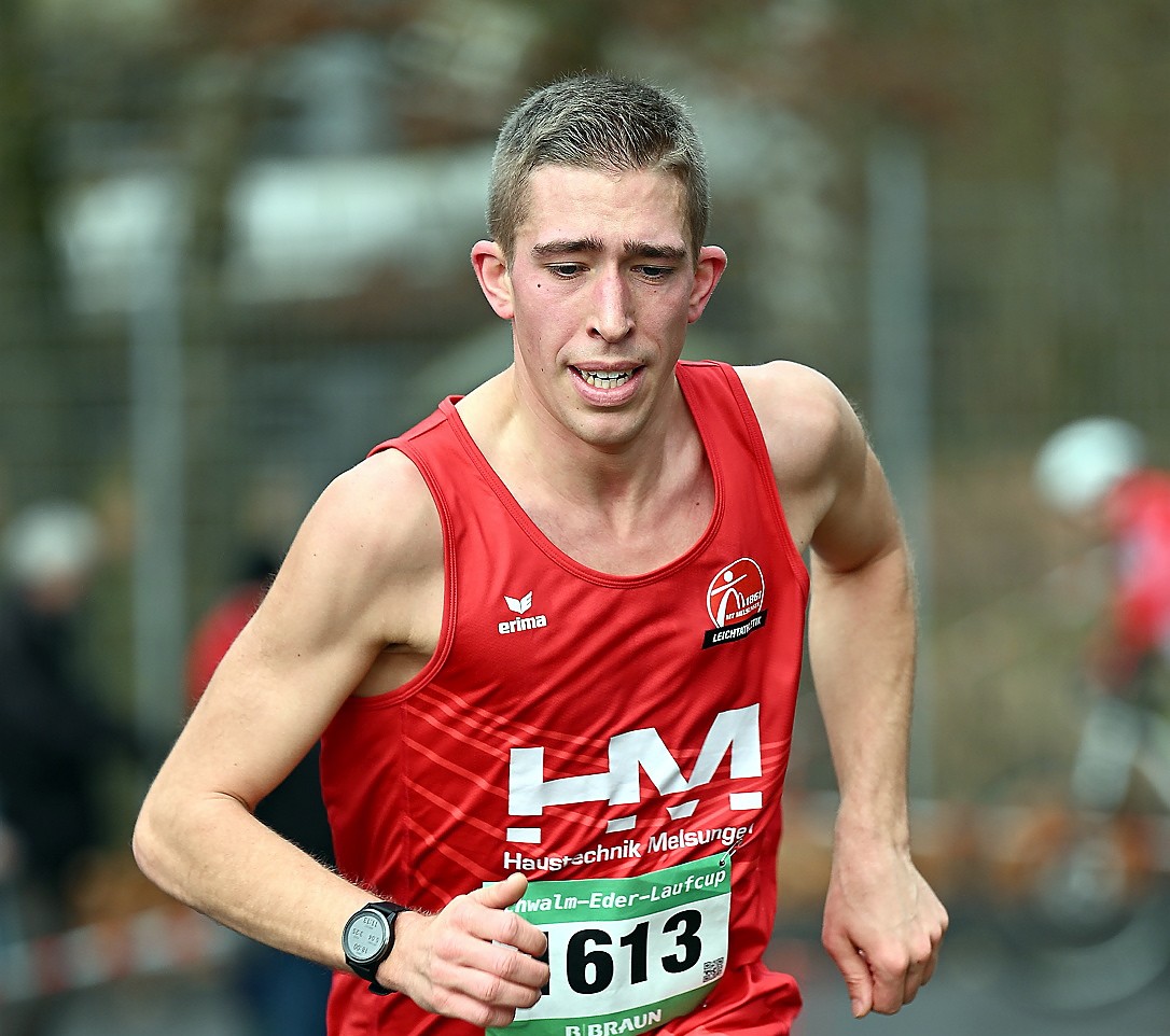 Melsungen 37 – Das soll ihm erst einmal einer nachmachen: Zum fünften Mal seit 2017 hat Lorenz Funck (MT) den jetzt 55. Adventslauf „Rund um die Koppe“ im Melsunger Stadtwald gewonnen. Bereits nach dem Start am Waldstadion stürmte der Sportliche Leiter der MT als Erster die Steigung der Todiallee hinauf und gab beim Sieg in 18:03 Minuten die Führung bis ins Ziel nicht mehr ab.