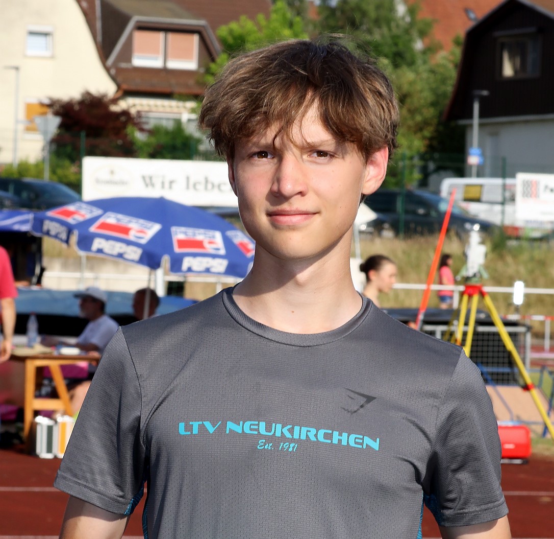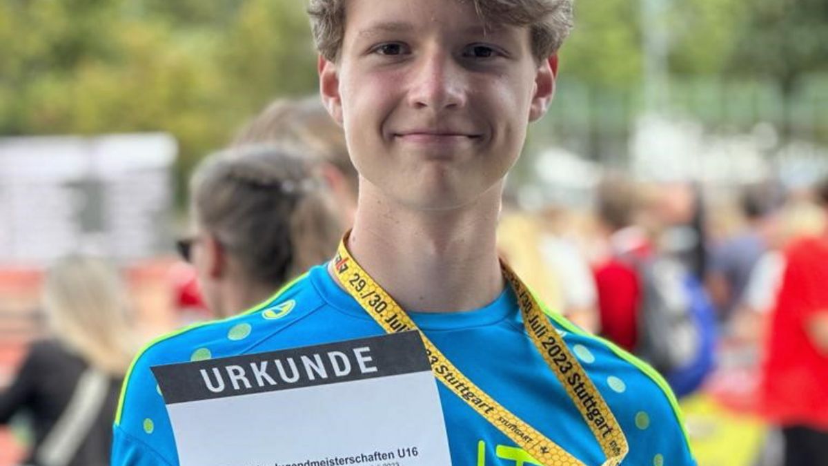 Stuttgart - Das ist ein einmaliger Erfolg. Jacob Thomä (LTV Neukirchen) hat bei der Deutschen Meisterschaft der Leichtathleten U 16 im Stadion Festwiese in Stuttgart den Hochsprung der Jungen M 15 gewonnen. Dabei lag der Melanchthonschüler bei 1,86 Meter durch zwei Fehlversuche hinter Josiah Reiter (LAC Chemnitz) und Lennox Giesen (TSV Senftenberg) noch an dritter Position. Doch von Kadertrainer Michael Birkelbach (Baunatal) vor Ort richtig eingestellt, überquerte Thomä anschließend alle Höhen im ersten Versuch und verbesserte den nordhessischen Rekord auf 1,95 Meter. Die Konkurrenz ? Diese hatte bereits bei 1,86 Meter ihr Pulver verschossen. Dieser Sieg ist auch ein Dankeschön an die Eltern Kathrin und Dirk, welche die wöchentlichen Fahrten zu den Trainingsstätten in Frankfurt und in Baunatal übernahmen. (zct)