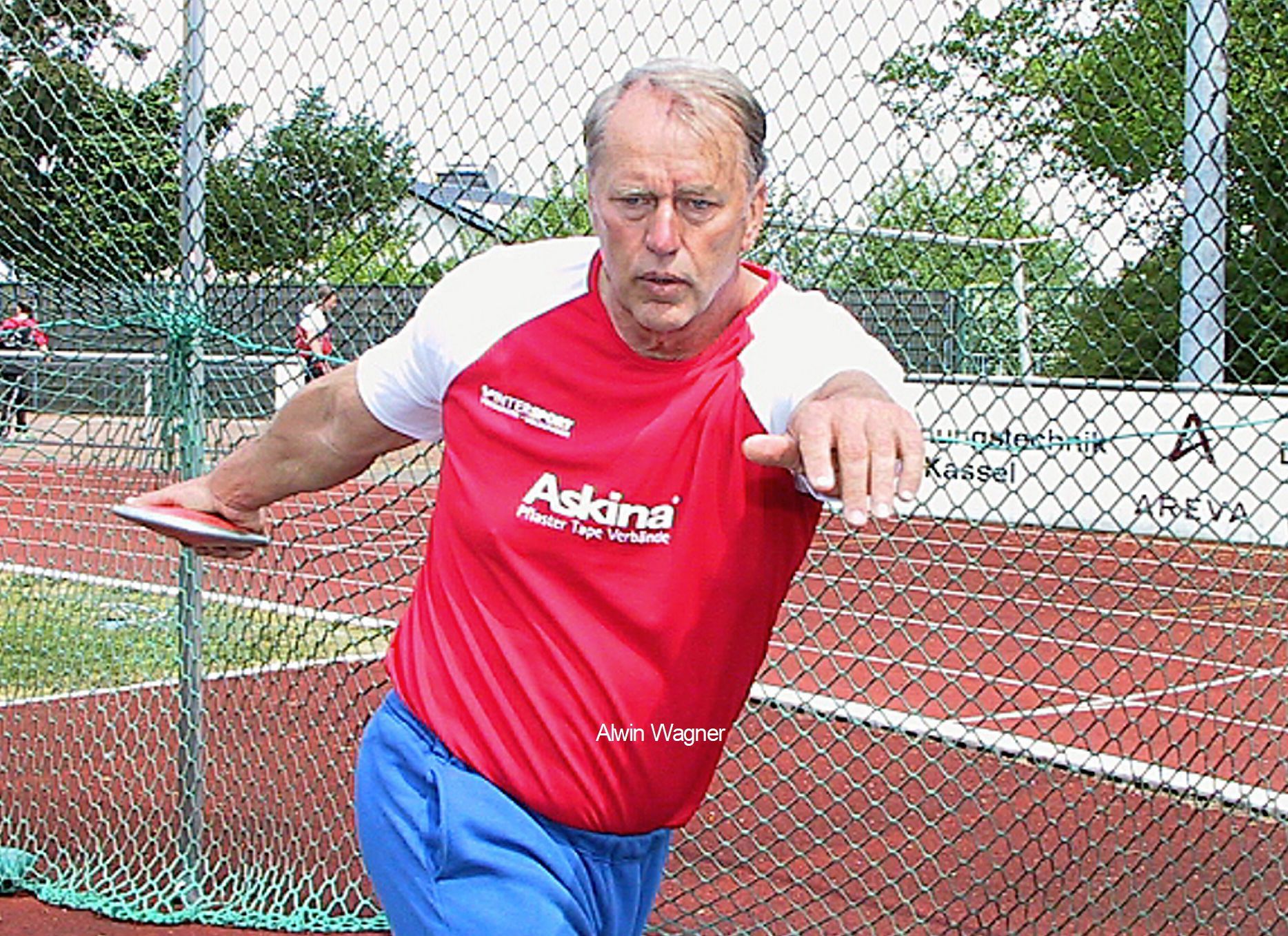 Alwin Wagner: Alwin Wagner und Diskus, das gehört zusammen wie Franz Beckenbauer und Fußball. Dieses schrieb Peter Fritschler einmal in der HNA. 1973 gelang dem Altmeister der erste Wurf mit der Zwei-Kilo-Scheibe über 60 Meter. Seine Glanzzeit verbrachte der sportliche Leiter der Leichtathleten der MT beim USC Mainz. Fünf Mal in Folge von 1981 bis 1985 gewann der pensionierte Hauptkommissar der Polizei Hessen die deutsche Meisterschaft im Diskuswerfen und krönte bei den Olympischen Spielen 1984 seine sportlichen Leistungen mit einem sechsten Platz. 1987 erreichte Wagner mit 67,80 m in Melsungen seine persönliche Bestweite und ist als Neunter in der „ewigen“ deutschen Bestenliste unter den Top-Zehn platziert.