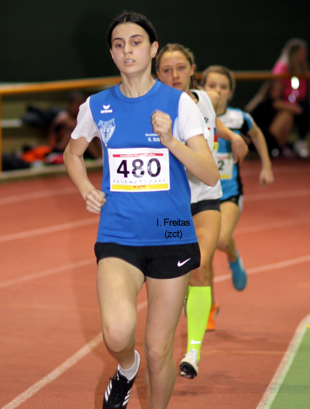 Seit Wochen ist Josephine Otto (LAV Kassel) in bestechender Form. Über 60 Meter bezwang die CJD-Schülerin aus Bad Zwesten die DLV-Ranglisten-Erste Holly Okuku (GSV Eintracht Baunatal) in 7,73 zu 7,85 Sekunden und steigerte sich tags darauf als Siegerin im Weitsprung auf 5,71 m. Unter 32 Mädchen erreichte Elly Losenhausen (RE) ebenfalls das Finale über 60 Meter und lief hier in 8,45 Sekunden auf den sechsten Rang. Mit überquerten 1,45 m überzeugte Lotte Chmilewski (Guxhagen/ LAV) als Sechste im Hochsprung.