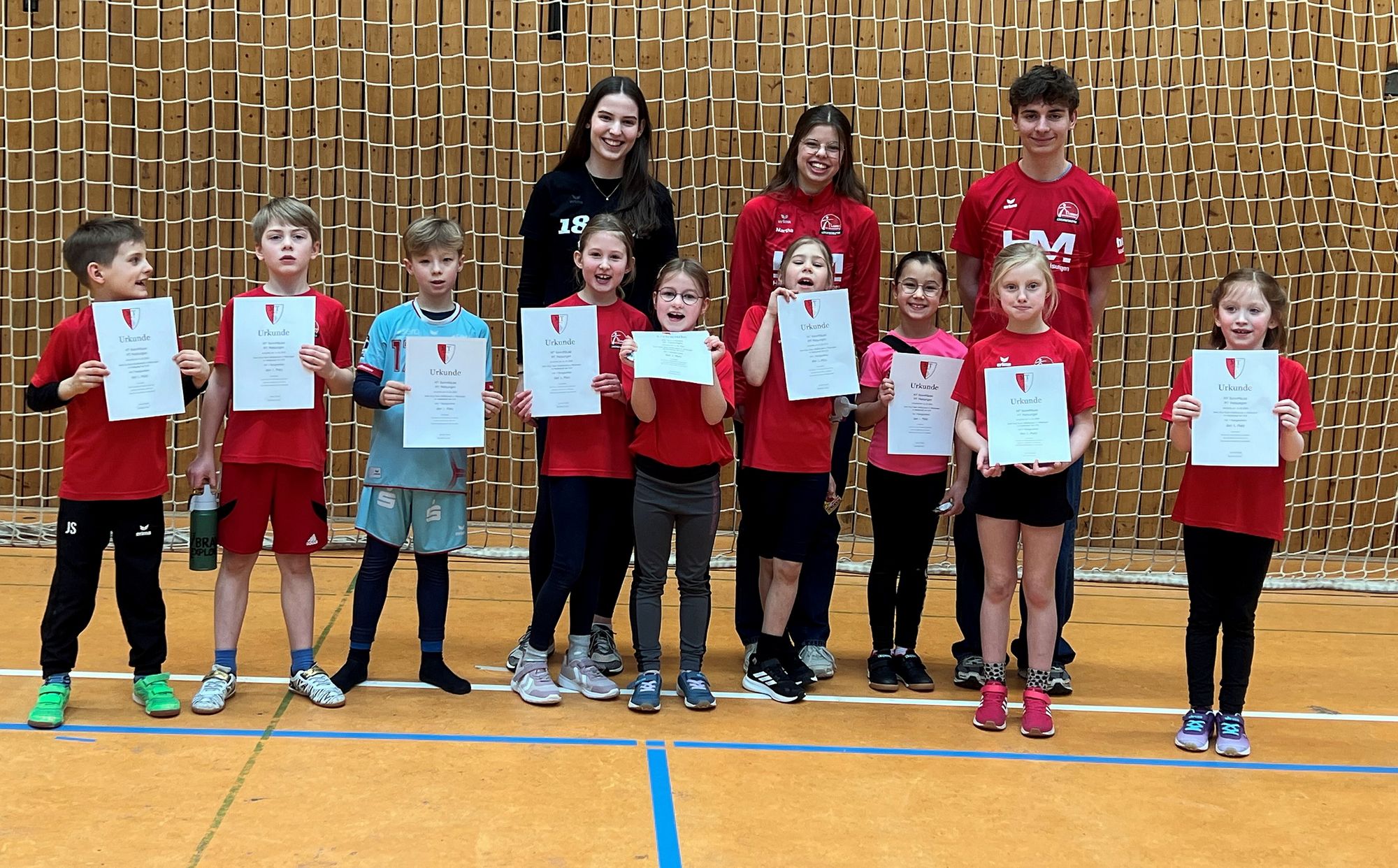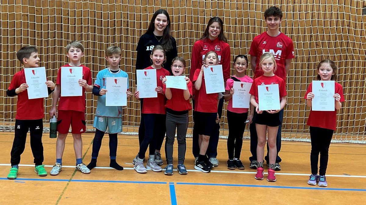 Unser Bild zeigt (von links nach rechts) Jaron Schwarz, Josua Siemon, Simon Mieruch, Sophia Dietrich, Johannah Risseler, Thea Ueberschaar, Nela Dehyar, Mathilda Giesen und Lotta Müller sowie im Hintergrund die Übungsleiter Lea Bott, Martha Jacob und Aaron Wicke. (zct)