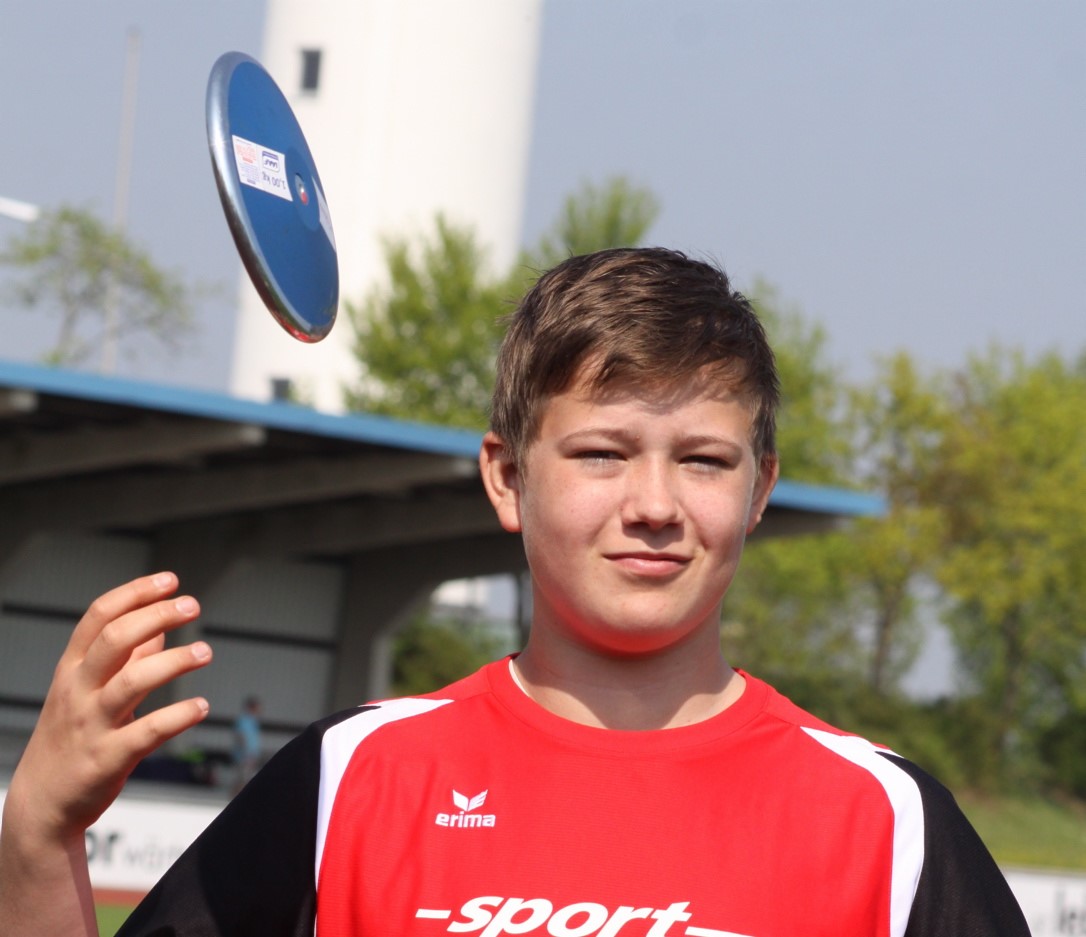Erstmals trat Luis Andre in dieser Saison mit der 1,5 Kilogramm schweren Scheibe im Diskuswerfen an und ließ sich auch nicht nervös machen als Favorit Jakob Nützel (LG Neumarkt) mit 46,77 m in Führung ging. Nach voller Konzentration übertraf der 1,98 m große Nachwuchsathlet im letzten Durchgang mit persönlicher Bestleistung von 46,79 m den jungen Bayer um zwei Zentimeter und sicherte der Landesauswahl die Höchstpunktzahl in dieser Disziplin. Nach einer Umstellung vom Angleiten auf Drehstoß reichten 15,87 m im Kugelstoßen (5 kg) lediglich zum fünften Rang. „Dennoch sind wir im Hinblick auf die Jugend-DM in Rostock auf einem guten Weg“, sagte Trainer Alwin Wagner.