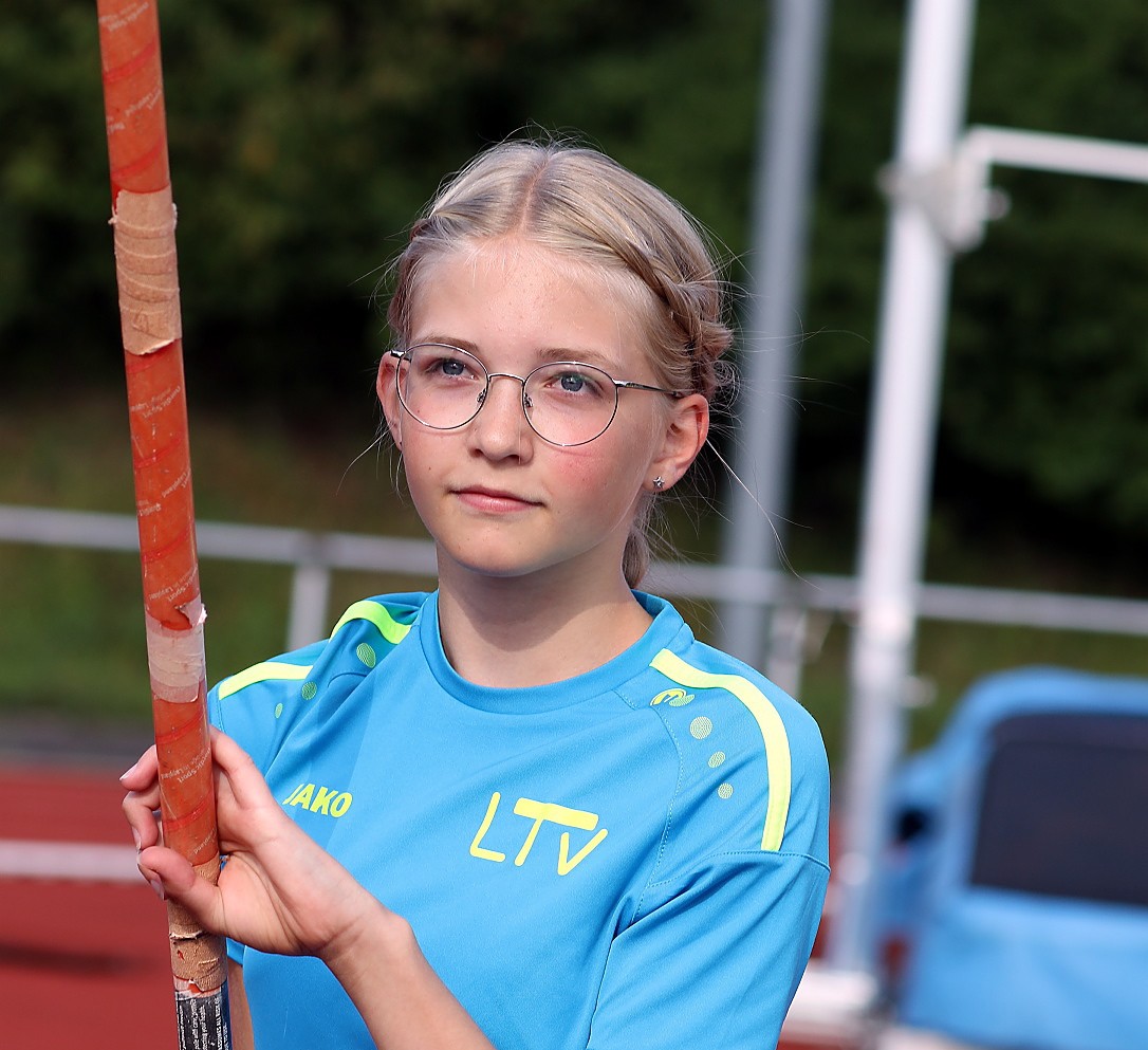 Etwas unbemerkt arbeitet sich Stabhochsprung-Sternchen Sophia Quehl (LTV Neukirchen) nach oben. Wie bei der Hessischen Hallen-Meisterschaft hatte die Melanchthon-Schülerin Glück und Können auf ihrer Seite und bezwang mit überquerten 2,60 Meter die höhengleiche Margarete Rothmann (VfL Marburg) durch die geringere Anzahl der Fehlversuche.