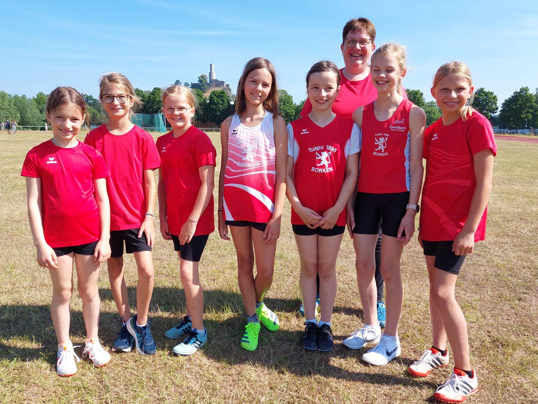Die Athletinnen des TuSpo Borken mit ihrer Trainerin Annette Engelhardt hinten